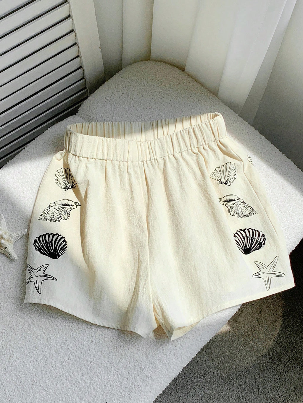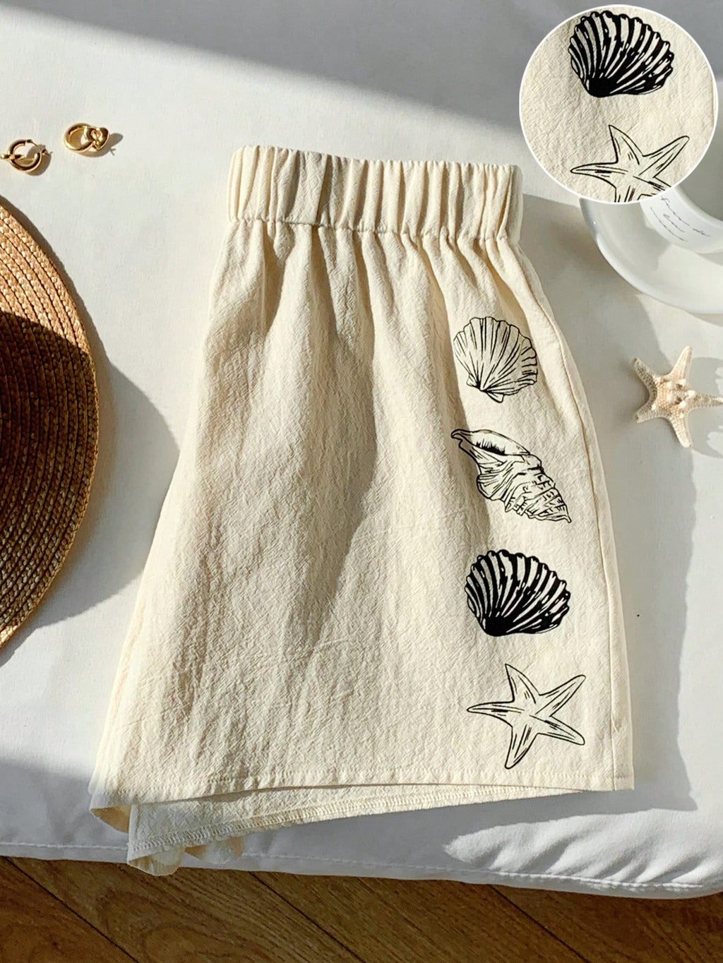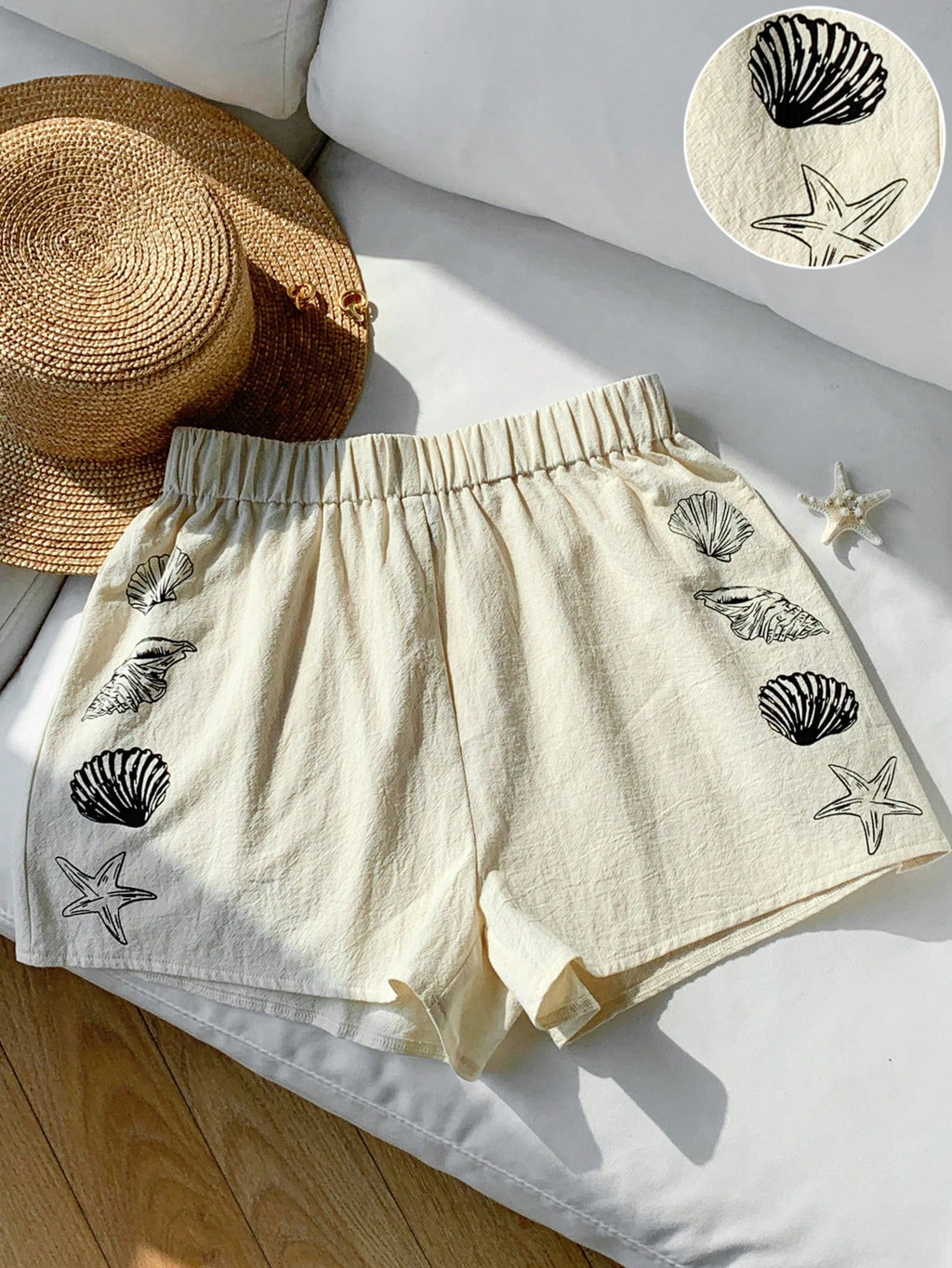 Short Feminino com Estampa de Conchas e Cintura Elástica - Luena