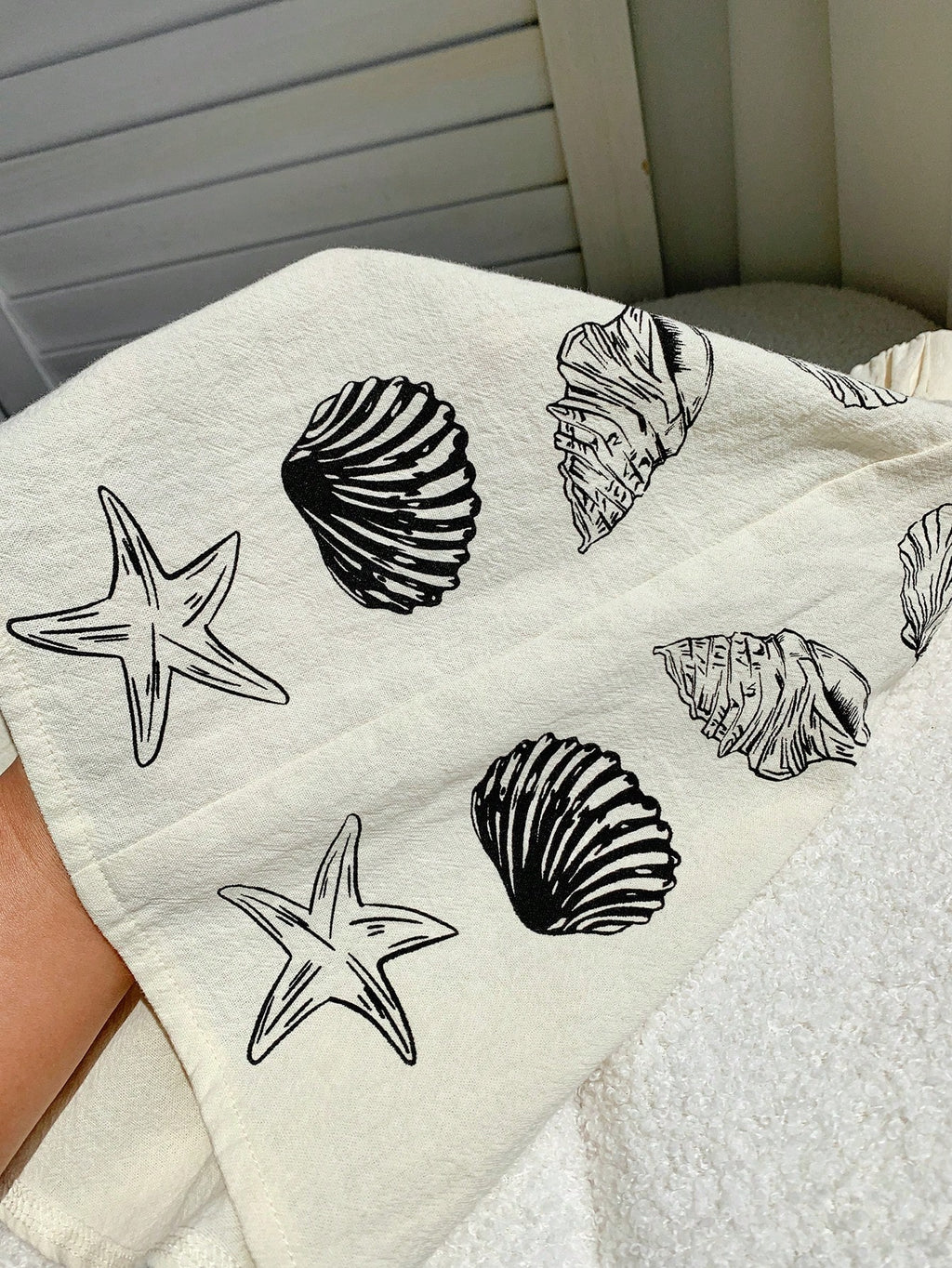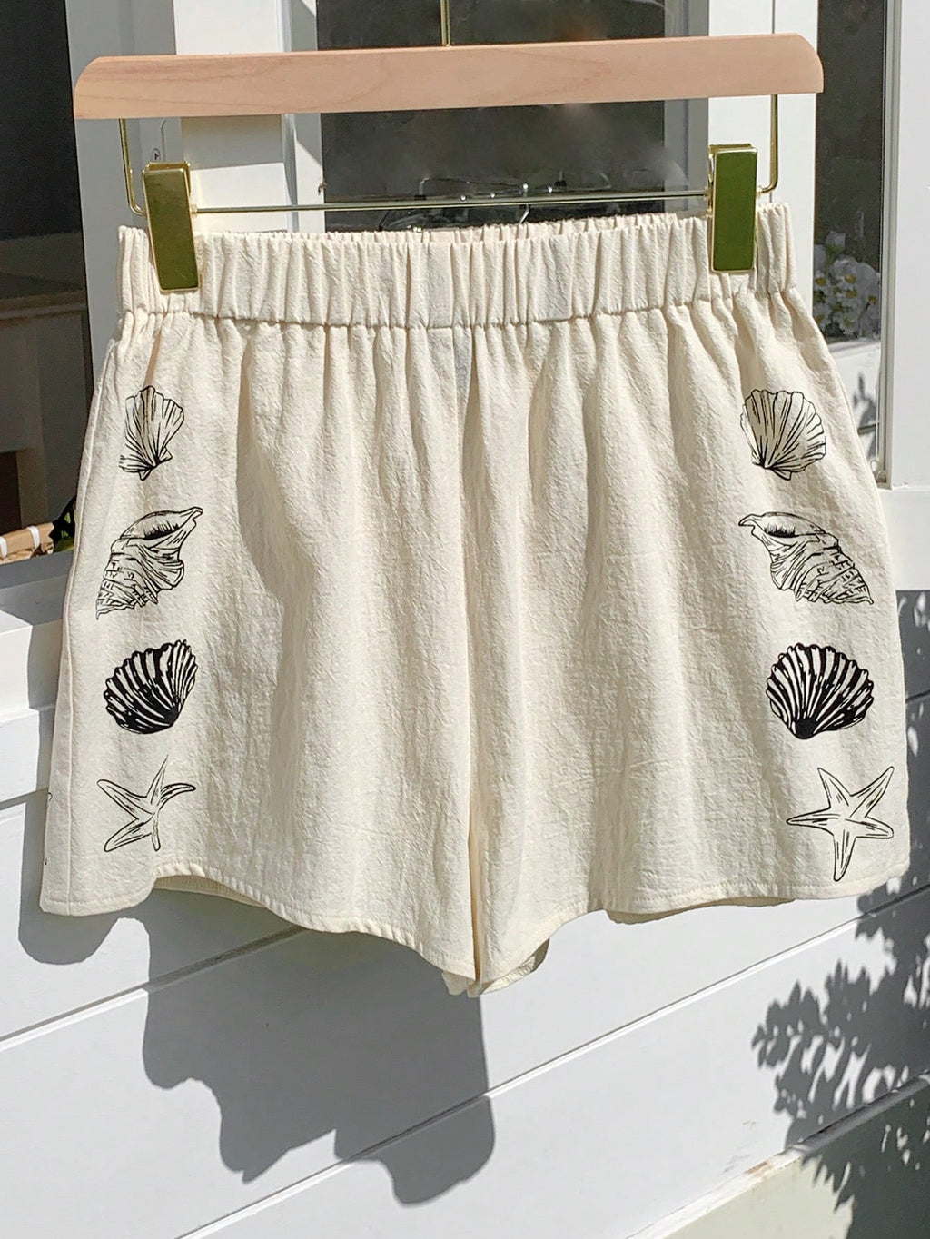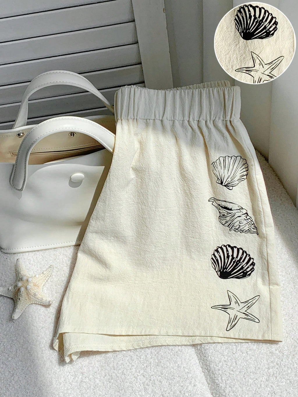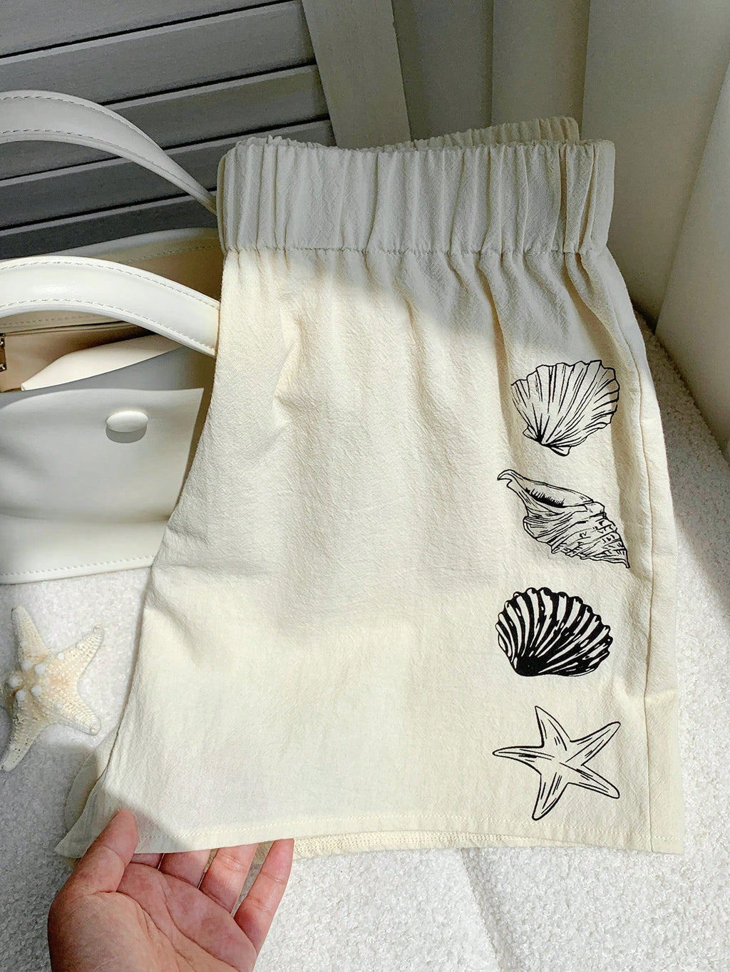 Short Feminino com Estampa de Conchas e Cintura Elástica - Luena