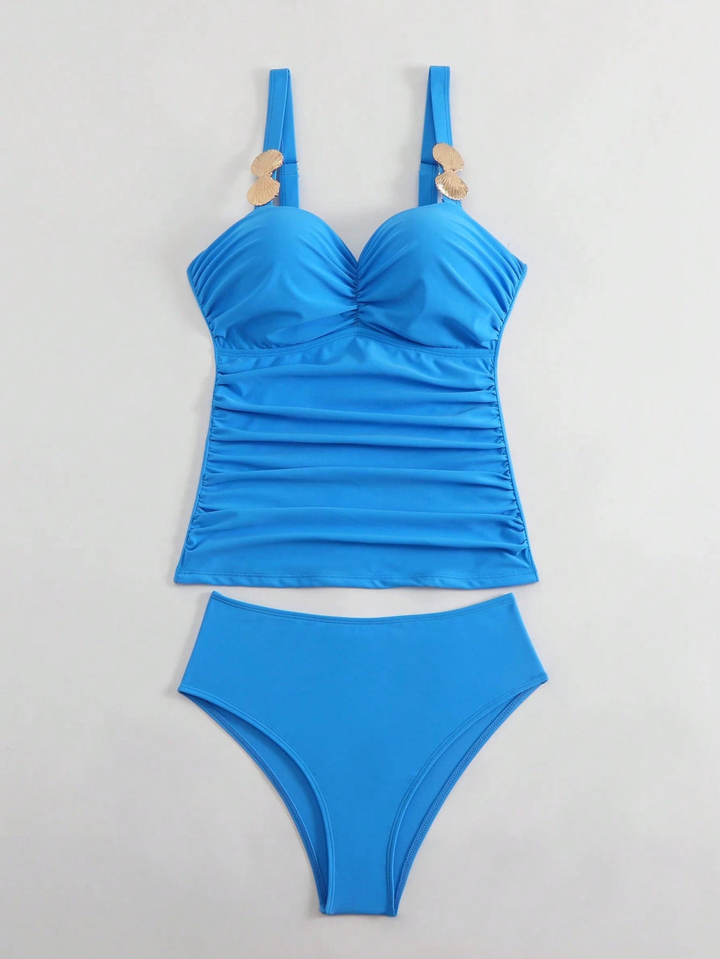 Tankini Feminino Frente Plissada e Alça de Metal - Audrey