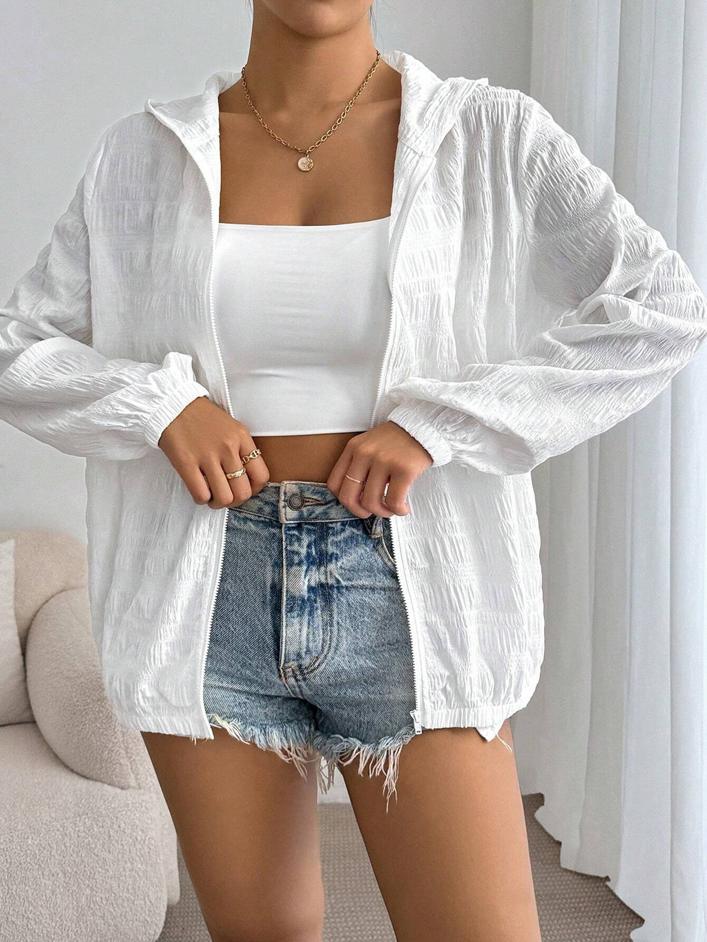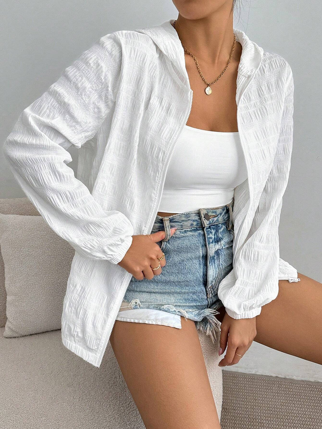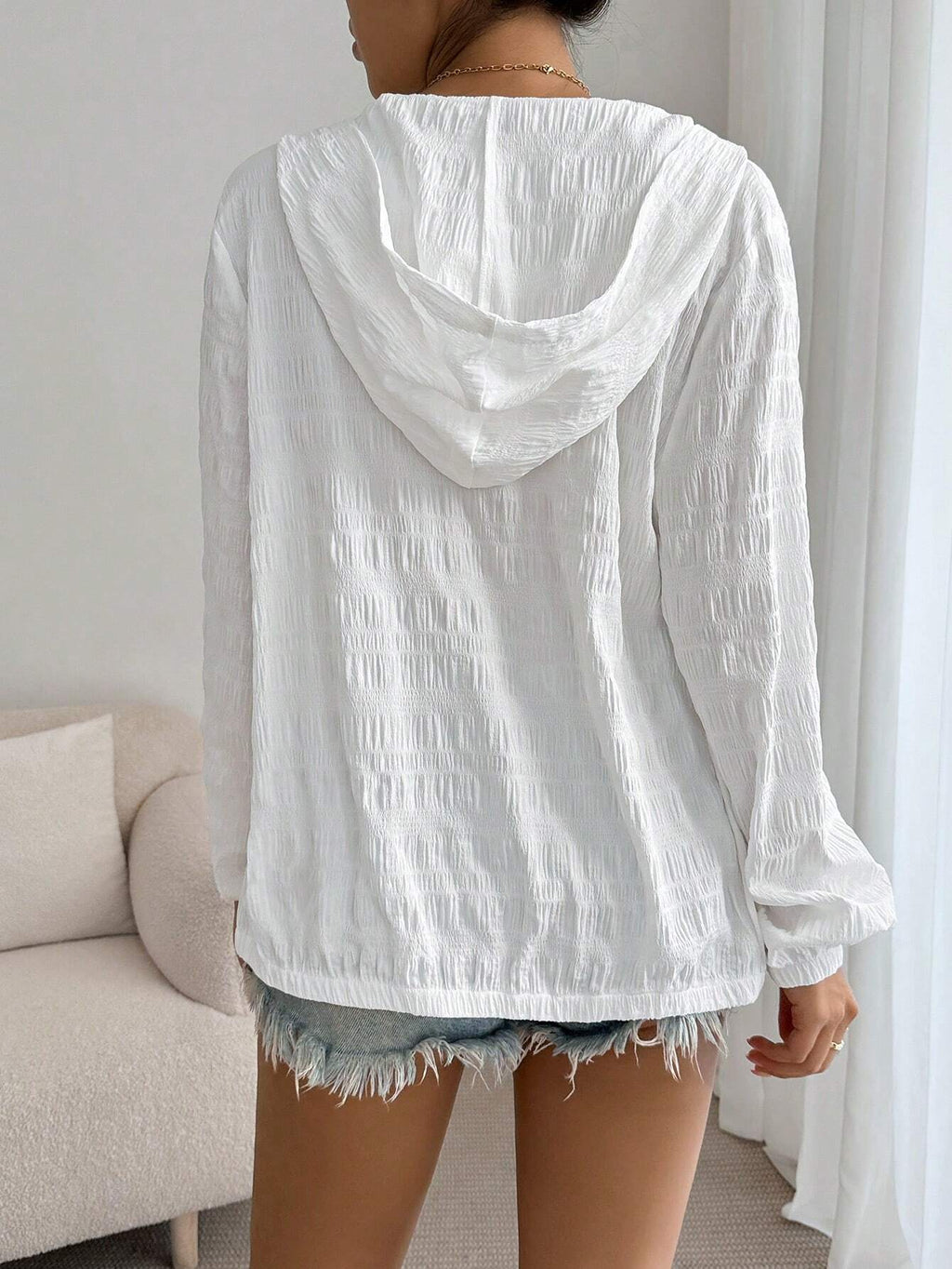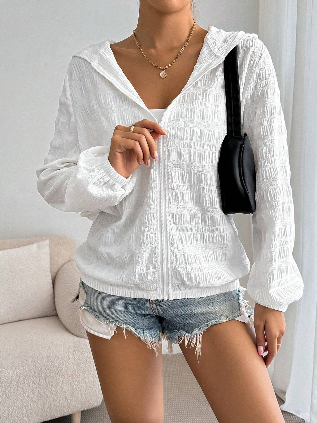 Jaqueta Feminina com Capuz, Zíper na Frente e Detalhe Plissado - Cécile