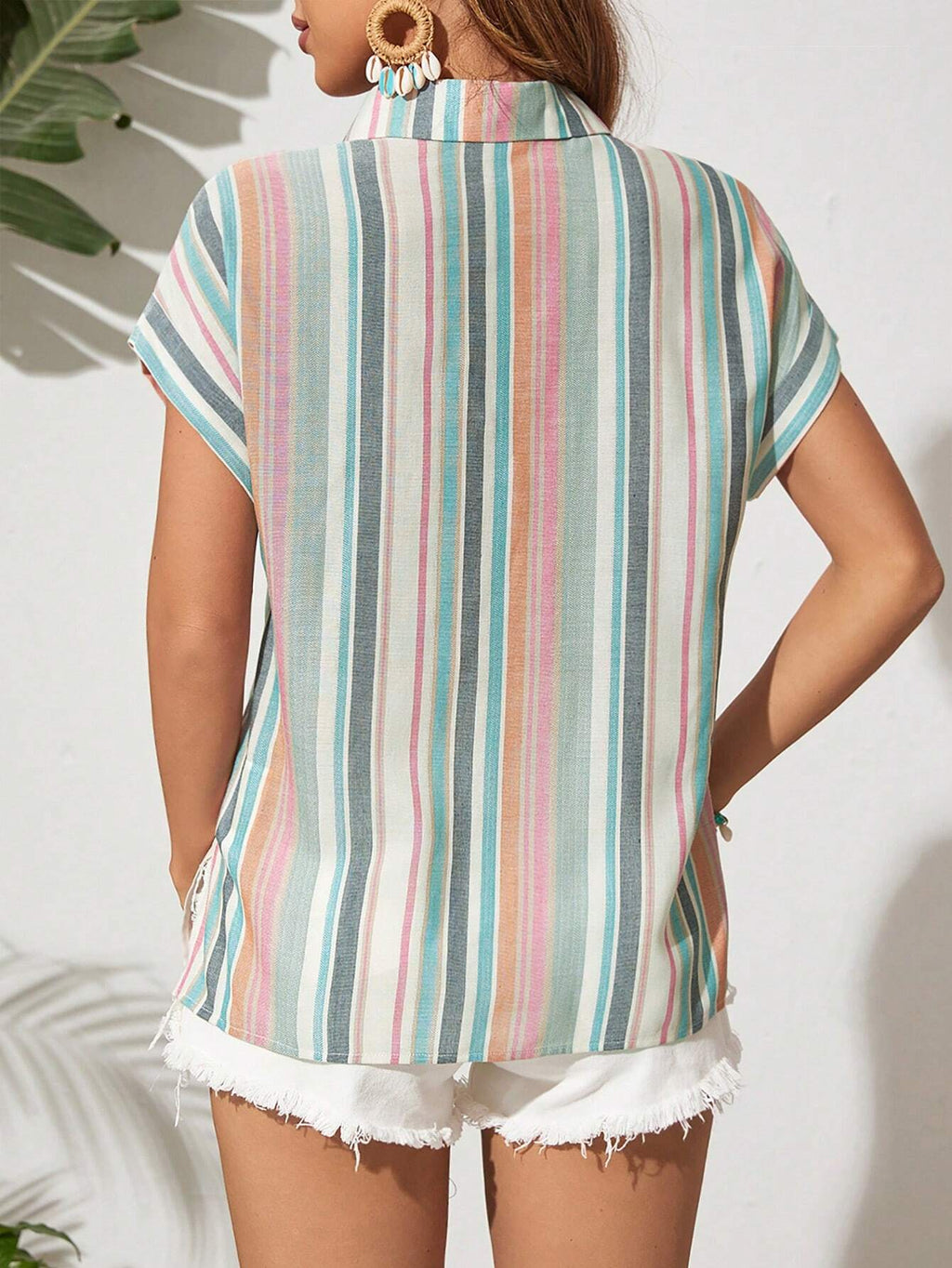 Camisa Feminina Listrada Com Botões Frontais - Leoni