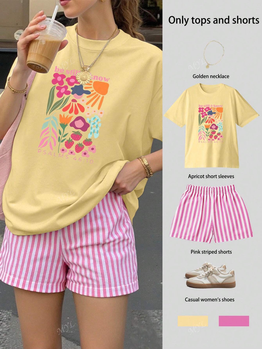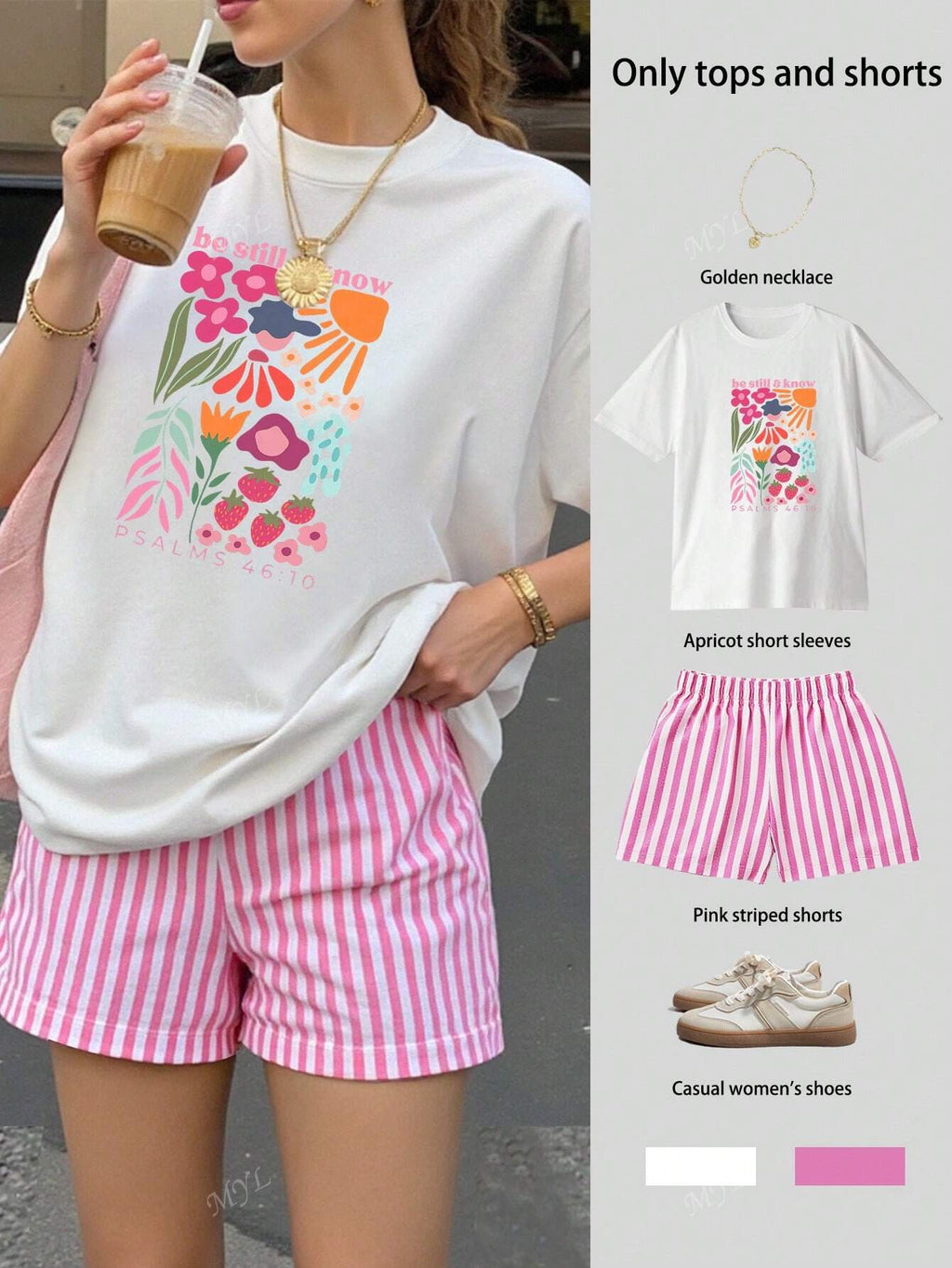 Conjunto Feminino de Blusa Oversized e Shorts Listrados - Giselle