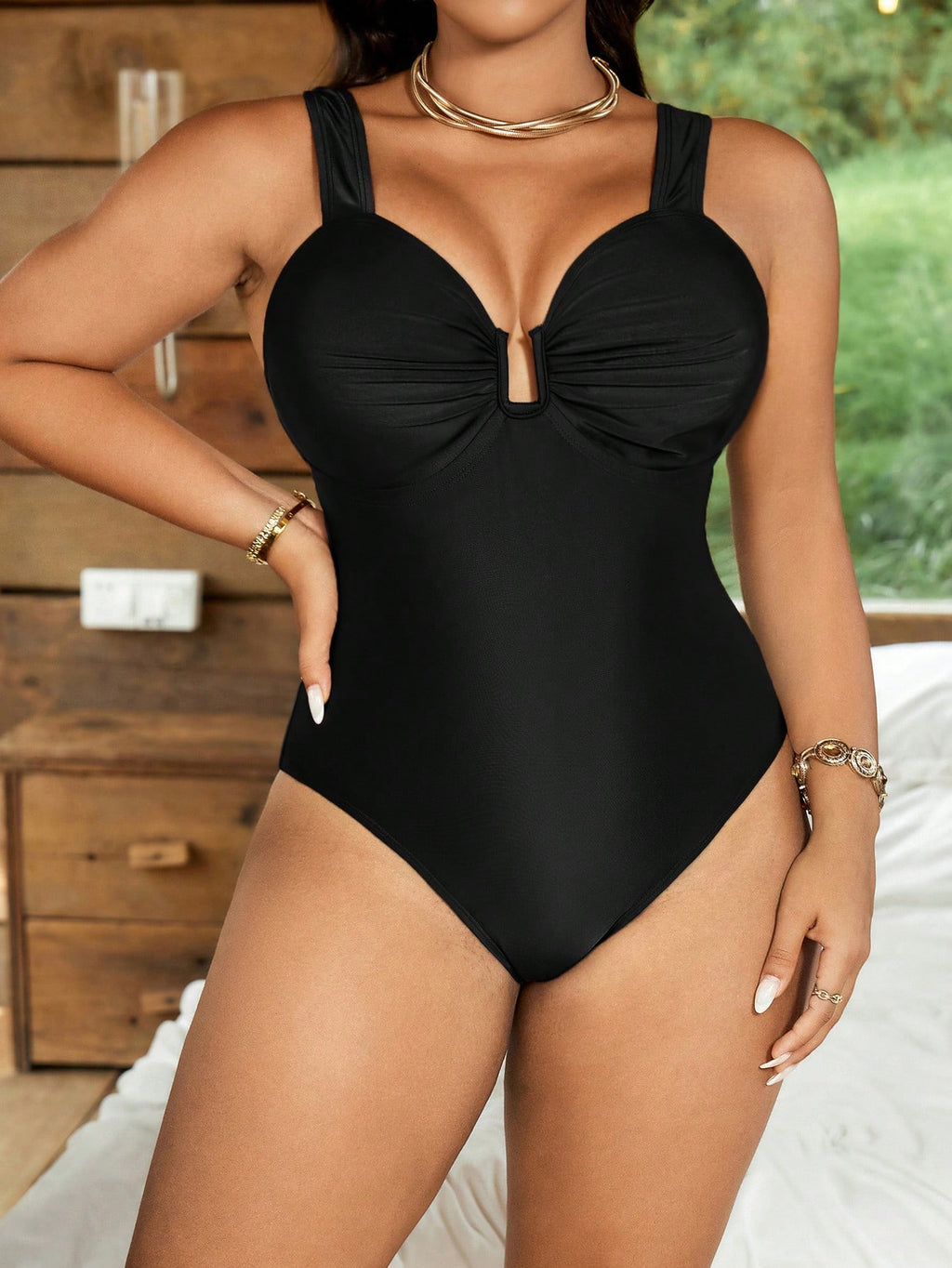 Detalhes: Costas nuas / sem costas, Fivela, Enrugado