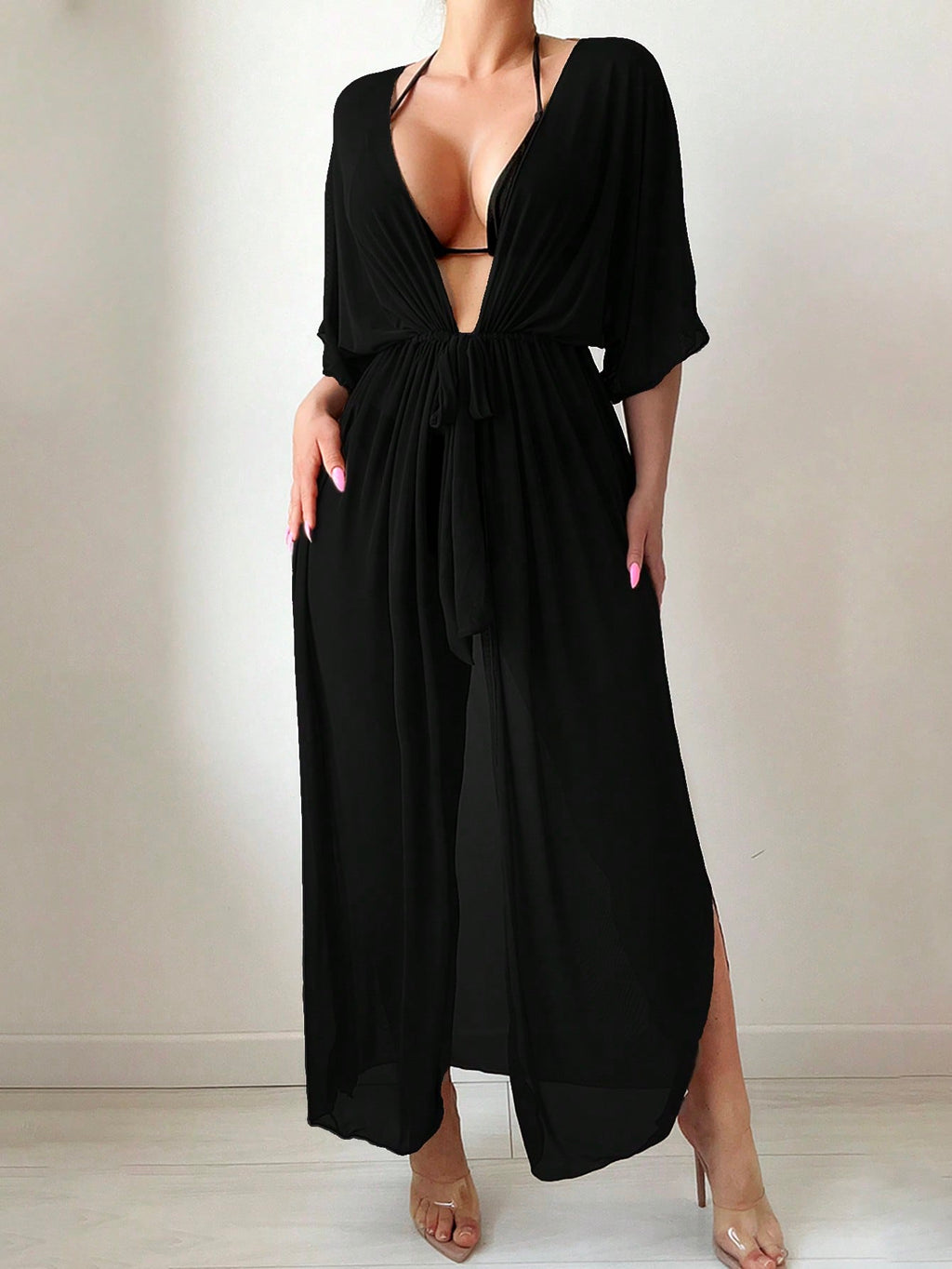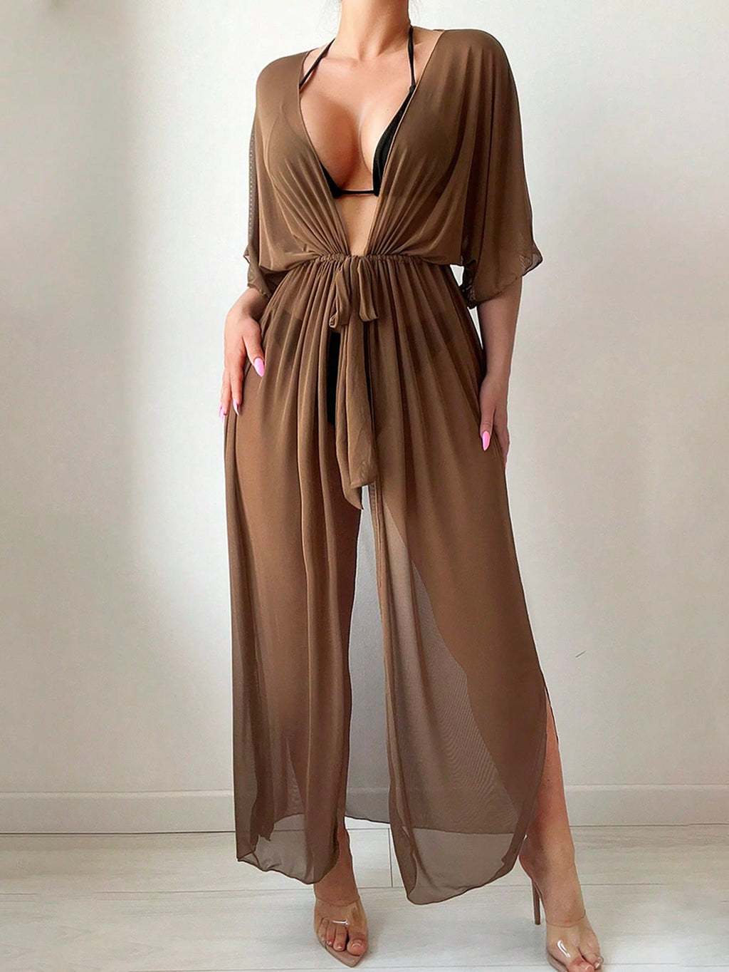 Quimono Longo Feminino de Saida de Praia com Cordão na Cintura - Livia